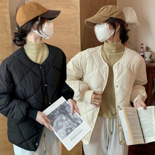 루즈핏 여성 노칼라 롱패딩 아우터 빅사이즈 따뜻한 코트 겨울 심플 퀼팅 패딩점퍼