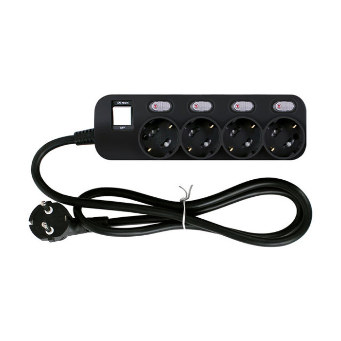 멀티탭 접지 4구 블랙 국산 개별형 1m 과부하 차단