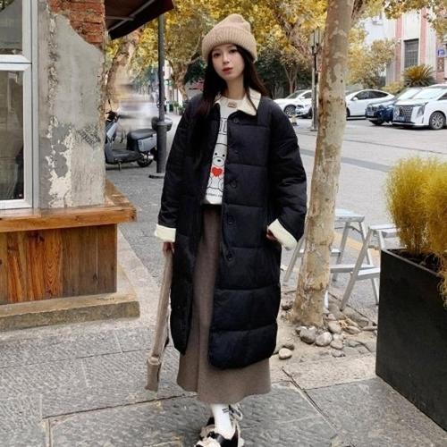 TEMU 블랙 골든 패딩 코트 - 신상 가을/겨울 루즈핏 도톰한 활용도 높은 캐주얼 스타일리시 아우터웨어