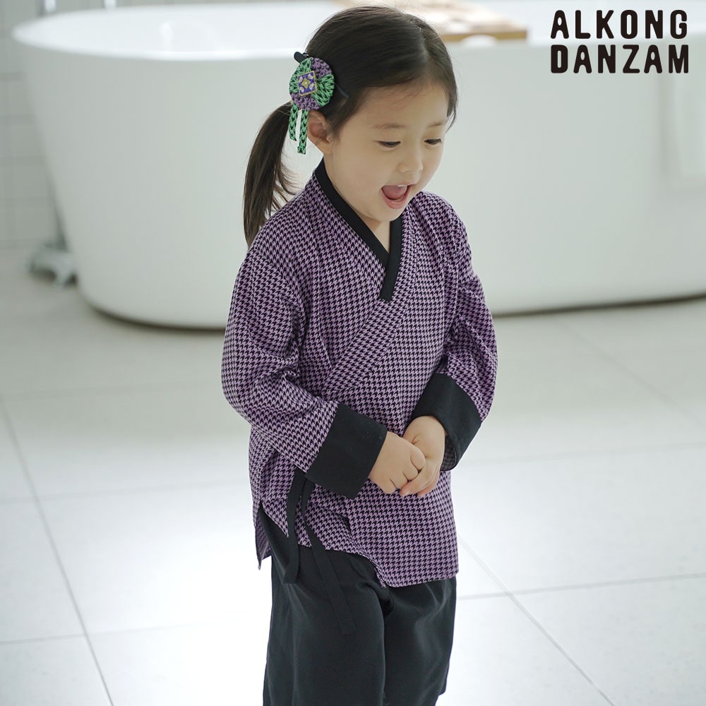 여아잠옷 한복파자마 하운드체크 실내복 인견레이온 퓨전 한복잠옷