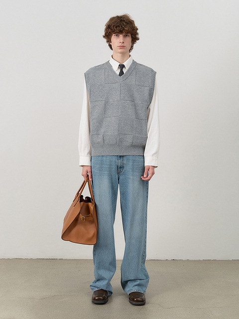 [던스트 포 맨] UNISEX DIVIDE V-NECK KNIT VEST MELANGE GREY_M_UDSW4C111G2
