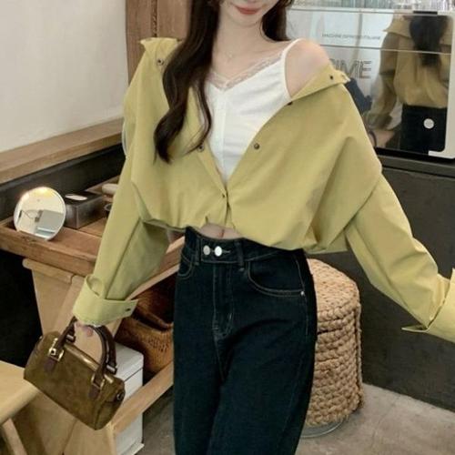 [엄지척]레이스 사니 여성 셔츠 일체형 세트 옐로우그린_19650582_667501