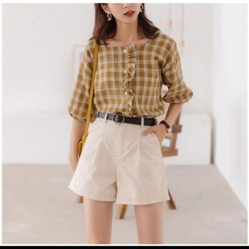 [엄지척]옐로우그린 체크블라우스 체크 블라우스 스퀘어넥 레_19650560_667501