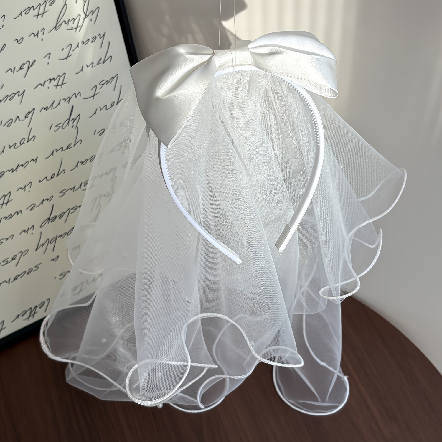 TEMU 화이트 리본 메쉬 헤어밴드, 신부에게 완벽하며 결혼식 및 일상복에 적합한 간편하고 스타일리시한 디자인