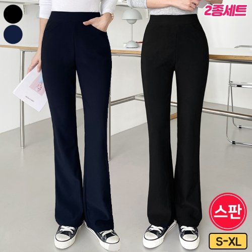 [2종세트] 가비진 숏/롱 2단기장! 스판 쫀쫀 허리 밴딩 슬림핏 세미 부츠컷 팬츠 바지