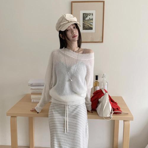 [미라클세븐]여성 라운드넥 시스루 니트 가오리핏 얇은 니트웨어