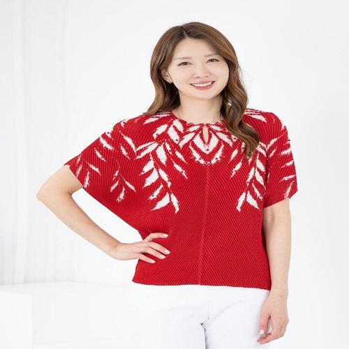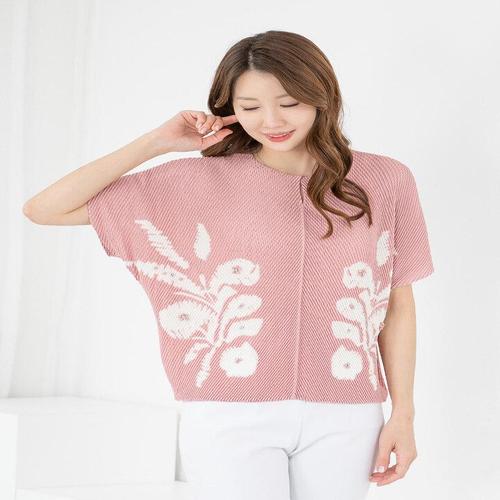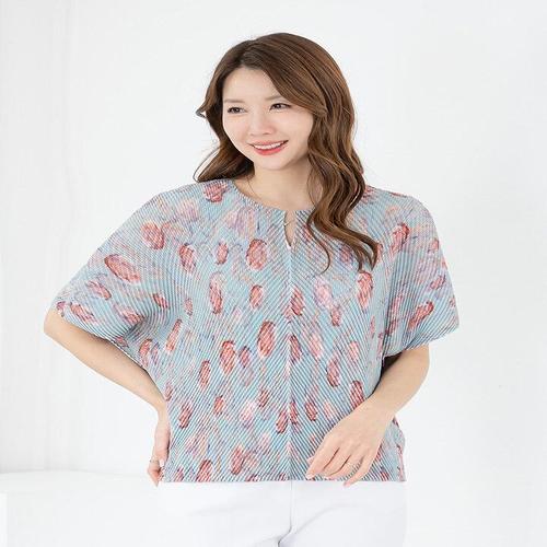[모슬린]엄마옷 플리츠 티셔츠 반팔 가오리 잎 603FGH197 마담/중년여성/빅사이즈/50대/60대