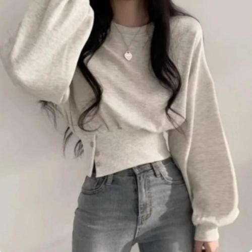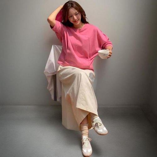 [신상오픈런]여성용 코튼 기본 절개 가오리핏 7부 맨투맨 티셔츠