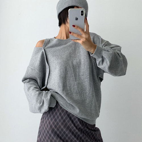 여자 언발 오프숄더 슬림핏 가오리핏 맨투맨