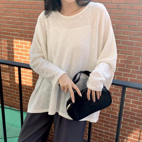 [옷자락] 여성 가오리핏 라운드넥 오버사이즈 시스루 긴팔 티셔츠