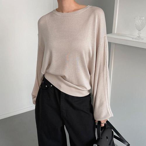 [미라클세븐]여성 라운드넥 시스루 니트 가오리핏 얇은 니트웨어