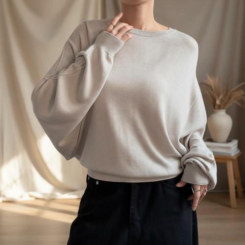 MINA STYLE 가오리핏 니트 스웨터 일자넥 티셔츠