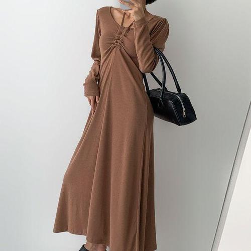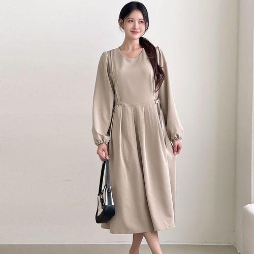 [신상오픈런]여성 가을 슬림핏 셔링 유넥 롱슬리브 드레스