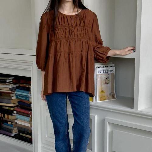 [신상오픈런]여성 셔링 디자인 캉캉 빅사이즈 가을 퍼프 소매 블라우스