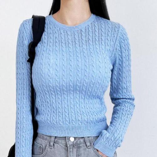 [에이치플러스몰]여성 봄 가을 꽈배기 세미 크롭 니트 티셔츠
