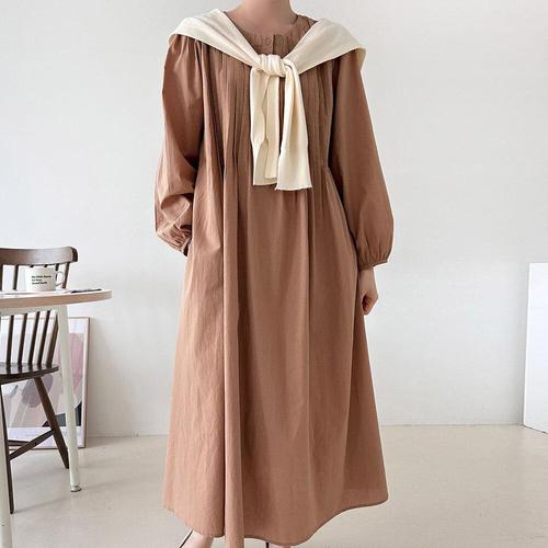 고품질 끈나시원피스 가을롱원피스 편한원피스 롱티 긴팔 (WFKEOJH)