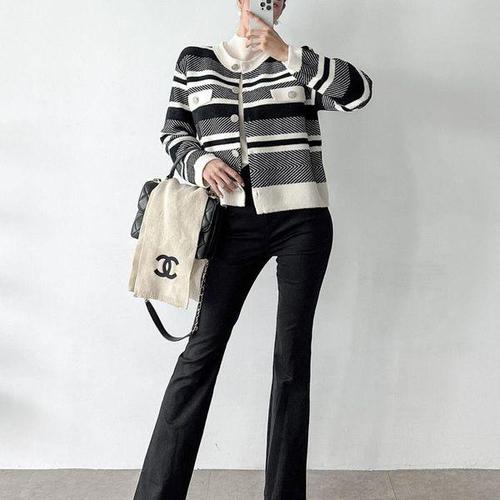 [신상오픈런]여성 스트라이프 니트 가디건 은색 버튼 가을 자켓