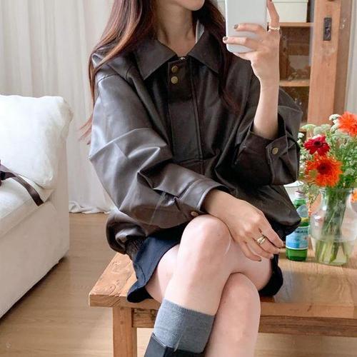 [신상오픈런]여성 가을 오버핏 카라넥 집업 가죽 자켓