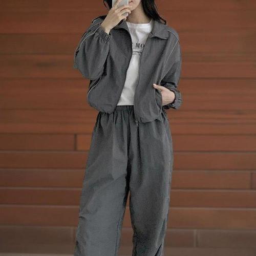 [신상오픈런]여성 하이넥 바람막이 점퍼 트레이닝 카라넥 가을용 삥줄 자켓