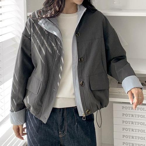 H스타일(OT)단추배색점퍼 가을 여성 집업 점퍼 자켓 재킷 아우터