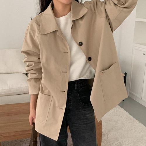 [옷자락] 여자 가을아우터 트렌치 펜던트 포켓 카라넥 하프 코트