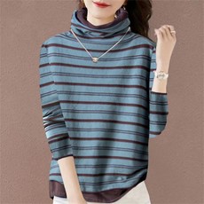 TKX 기모안감 티셔츠 여성 스트라이프 하이넥 따뜻한 가을 겨울 캐주얼 발열 K87
