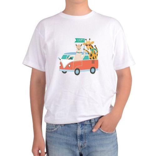 [에이치플러스몰]길단 아시아핏 반팔티 동물가족 모임 기린그림 다양한색상 전사이즈
