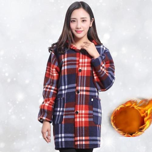 후드 코트 체크 하프 벨벳 후리스 간절기 아우터 자켓 WEE8E10