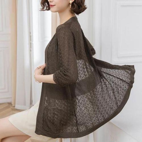[에이치플러스몰]여성 간절기 얇은 시스루 니트 가디건 세미크롭 아우터 4색