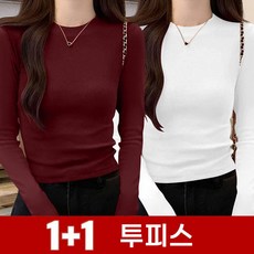 TKX 1+1 티셔츠 여성 봄 가을 간절기 캐주얼 심플 베이직 슬림핏 긴팔 이너 K37