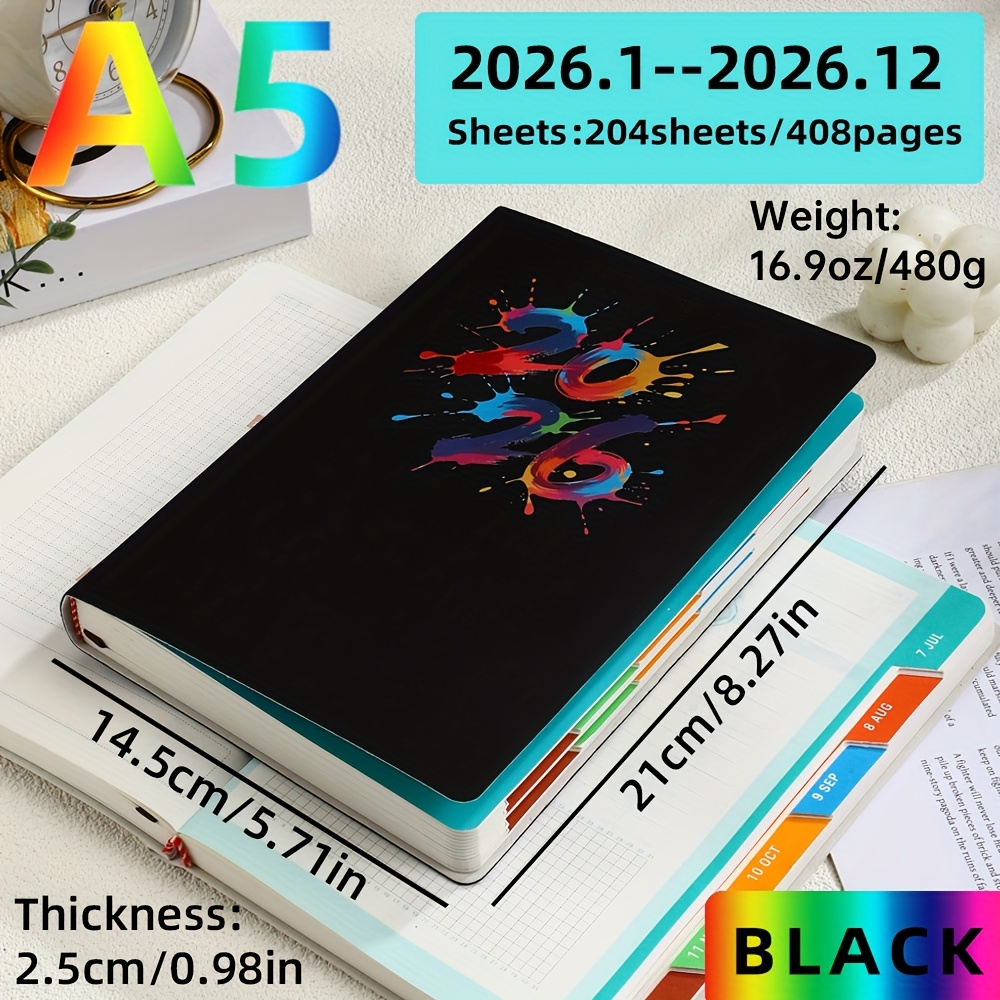 TEMU 1개 A5 사이즈 2026 컬러 인덱스 연도 플래너, 204장 408페이지 일일 일정표 및 월간 캘린더 다이어리 (1월~12월), 데일리 라이프·오피스·학교용, 크리스마스&추수감사절 선물 추천