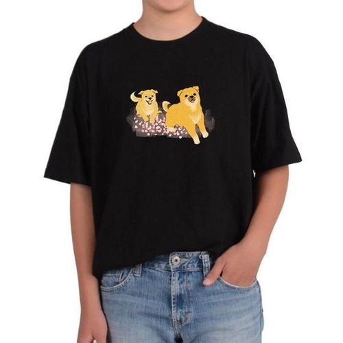 [에이치플러스몰]길단 반팔 USA핏 강아지 친구 꽃길만 걸어라 뛰어노는 강아지그림 다양한색상 전사이즈