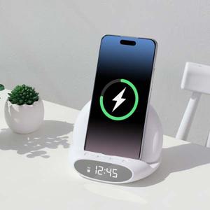 HULULU 무선 3in1 고속 충전기 LED 시계 아이폰 삼성 갤럭시 호환, 1개, 화이트