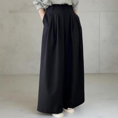 [다잇템]여자 검정 핀턱 미색 하프 넓은 슬랙스
