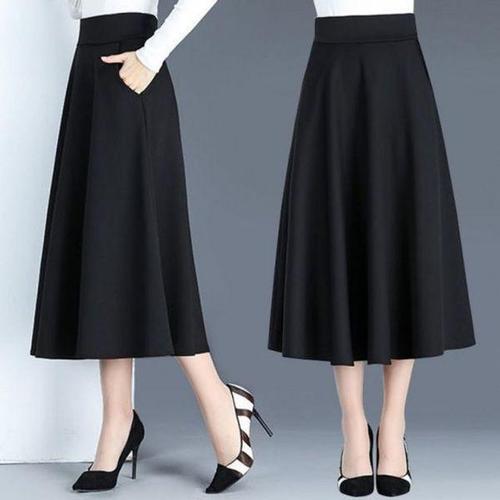 [에이치플러스몰]여성용 세미플레어 주머니 허리밴딩검정 데일리 플레어스커트