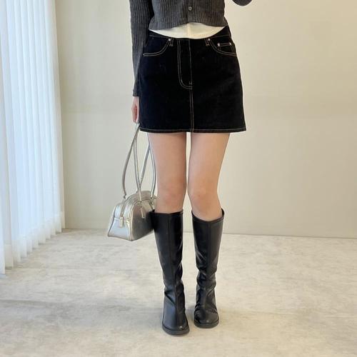 편한 데이트 룩 스커트 반바지 버클 벨트 롱부츠 검정 (WFKBWAW)