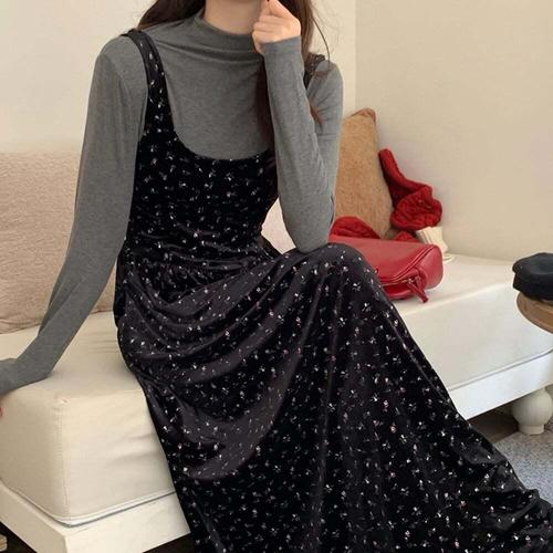 [셀럽하우스]여자 CMJE9823 데일리 검정 롱 원피스 드레스 오피스