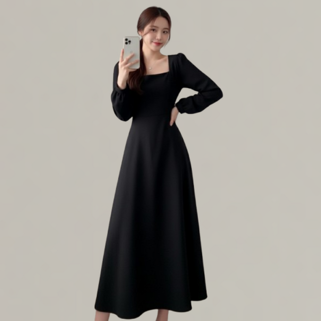 [셀럽하우스]검정색 IUBQ4375 하객 스퀘어넥 결혼식 여성 원피스 블랙