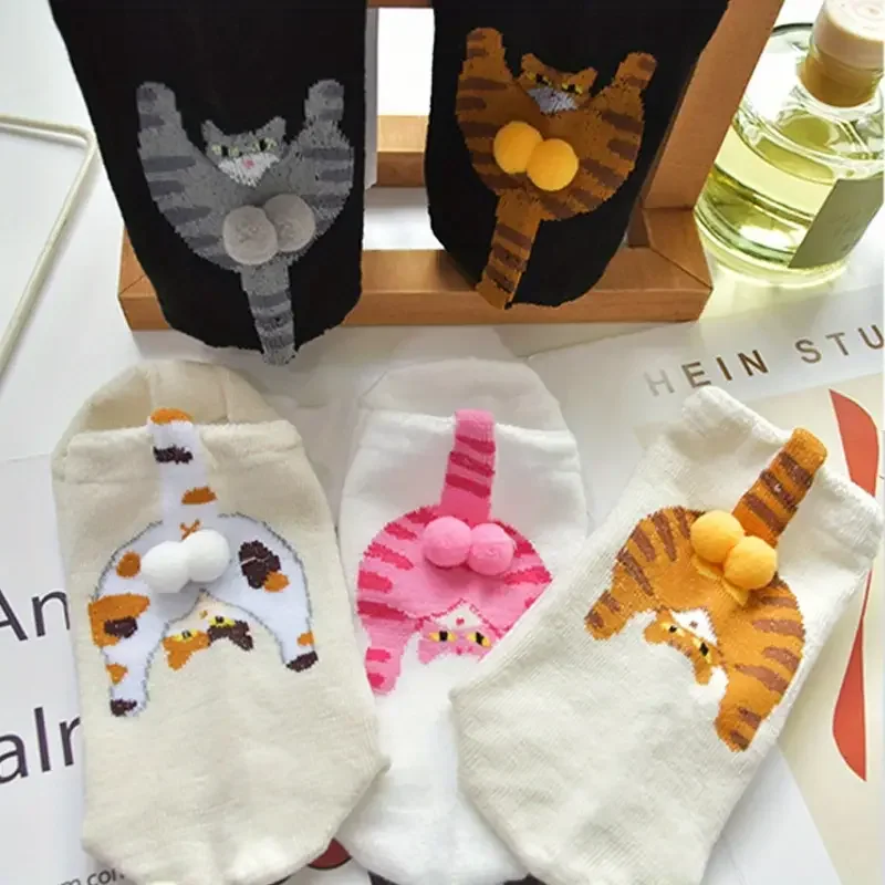 1/5쌍 가을 겨울 만화 고양이 캐릭터 따뜻한 양말 귀여운 니트 양말 부드러운 카와이 여성 캐주얼 발목 양말 스타일리시한 사계절용