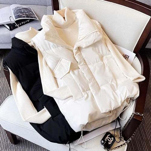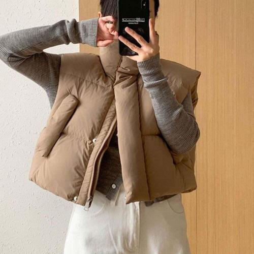 [셀럽하우스]가을 ENVI2456 겨울 여성 패딩패션 밑단조임 하이넥 패딩조끼