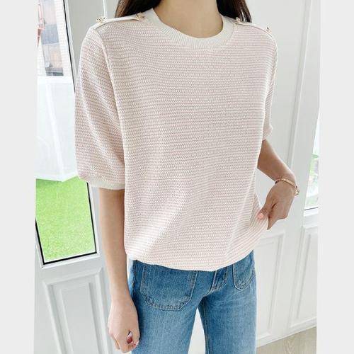 |CDT8BE4|시보리 반팔니트 자켓이너티 미시룩 단정한 견장 반소매