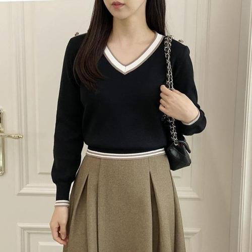 [다잇템][다잇템] 여자 가을하객 롱슬리브 크롭니트 V넥 버튼 견장 티셔츠_18379690_588872