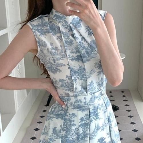 [다잇템][다잇템] 여자 그런지 모크넥 핀턱 슬리브리스 견장 나염 블라우스_22205372_588872