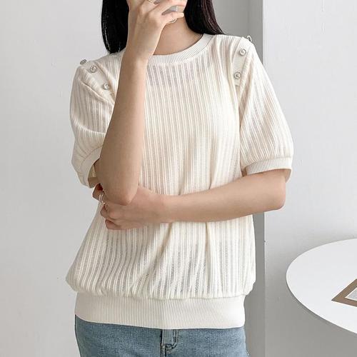 [신상오픈런]시보리 반팔니트 자켓이너티 미시룩 단정한 견장 반소매