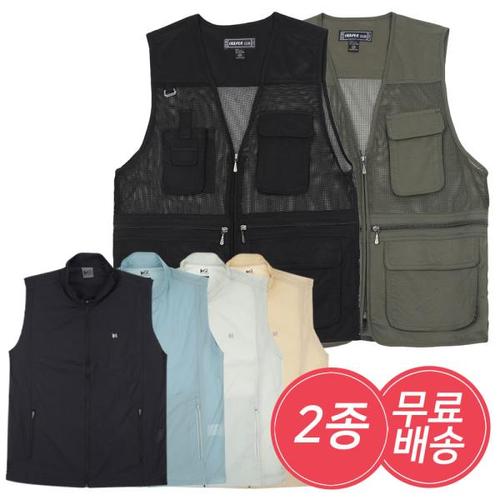 [리빌모아][1+1]봄여름 초경량 바람막이 등산 낚시 캠핑 멀티포켓 메쉬 레저 조끼 2종세트 무료배송