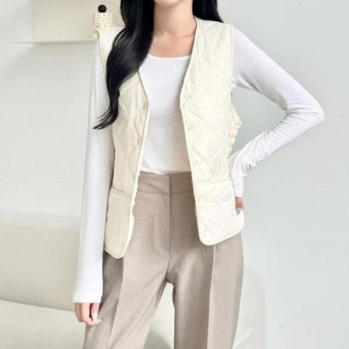 [SBD] 경량 누빔 여성 테두리패턴 간편코디 패딩조끼 V넥