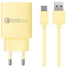 홈플래닛 퀄컴 공식인증 QC3.0 18W 고속충전기 + C타입 충전케이블 1.2m 세트, 옐로우, 1세트