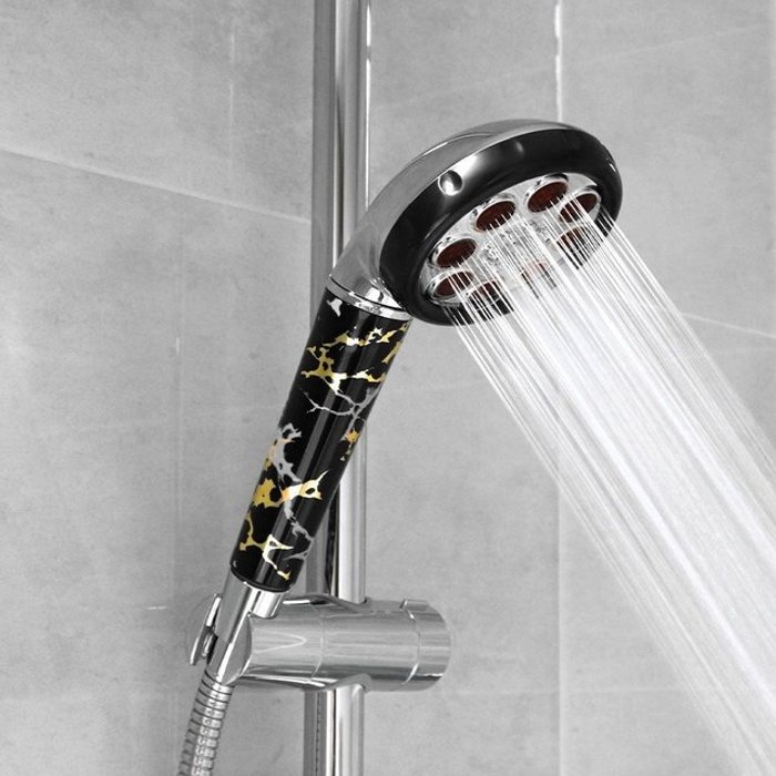고수압 황토볼 필터 수압상승 블랙골드 샤워기 헤드 + 금색 샤워호스 줄 1.5m 세트