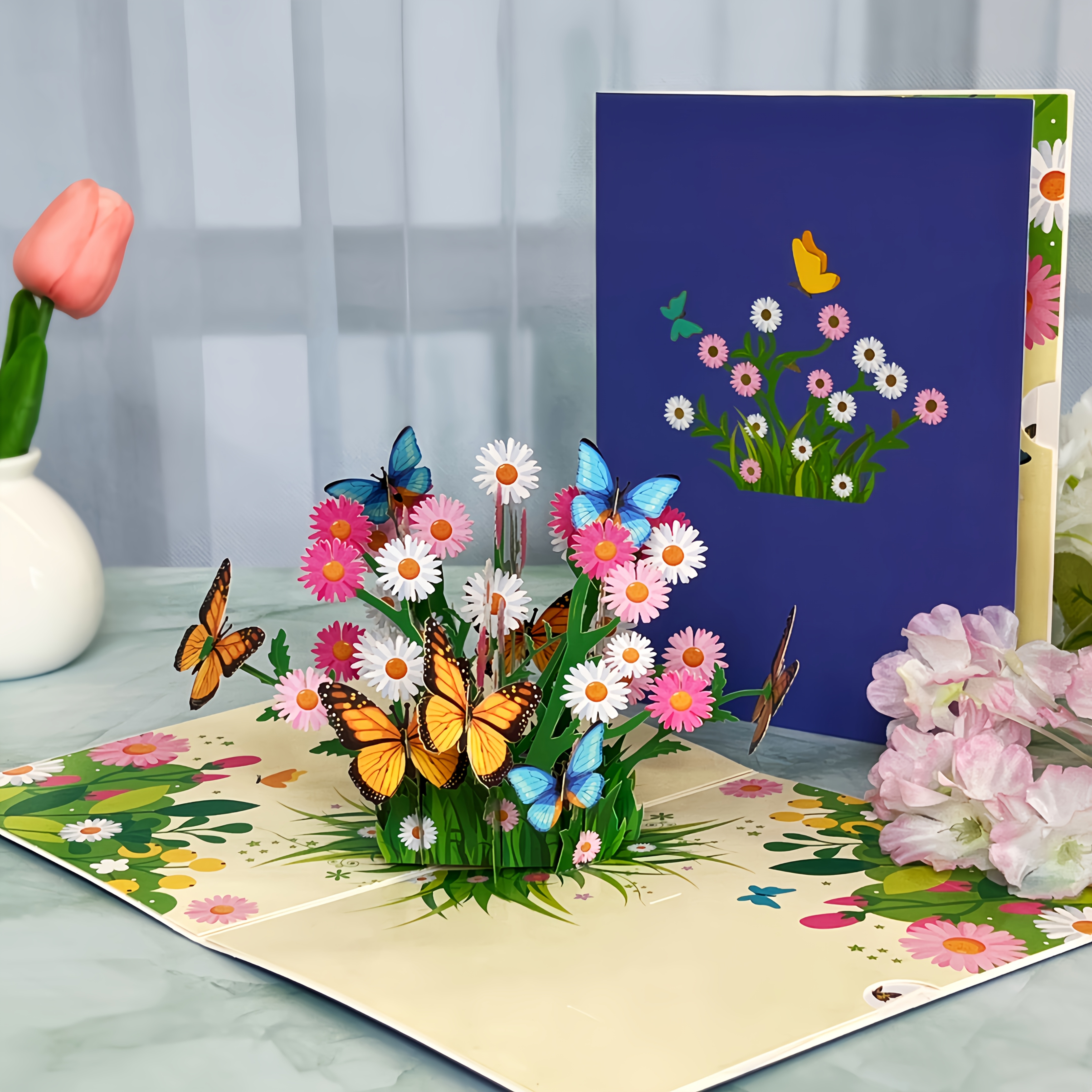 TEMU 1개 팝업 3D 카드 + 봉투 포함, 나비 꽃무늬, 동창/선생님/동료/조카/손녀/딸/언니/이모/선배/아내//여성/할머니/엄마/며느리에게 적합, 생일/보고 싶다/회복 기원/휴일/축하/어머니날/감사/은퇴/기념일/행운의 날에 사용 가능