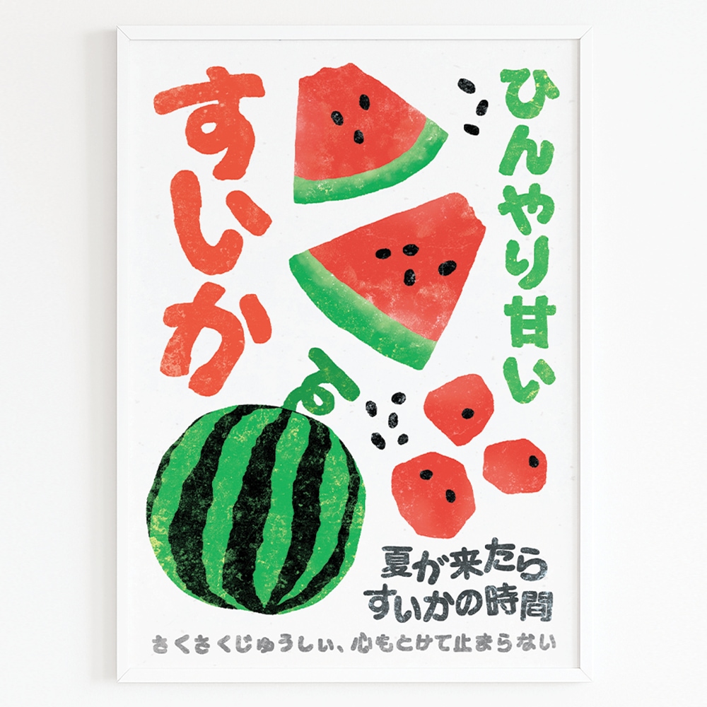 쇼와 일본 여름 과일 쇼와풍 수박 사진 그림 일본어 포스터 레트로 감성 A4 A3 액자